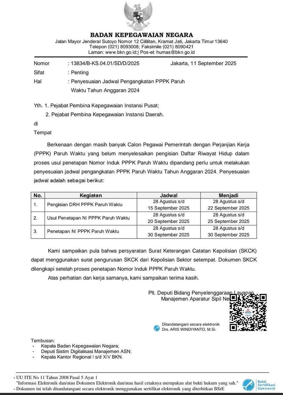 1. Pengisian DRH PPPK Paruh Waktu 28 Agustus s/d 15 September 2025 menjadi 28 Agustus s/d 22 September 2025