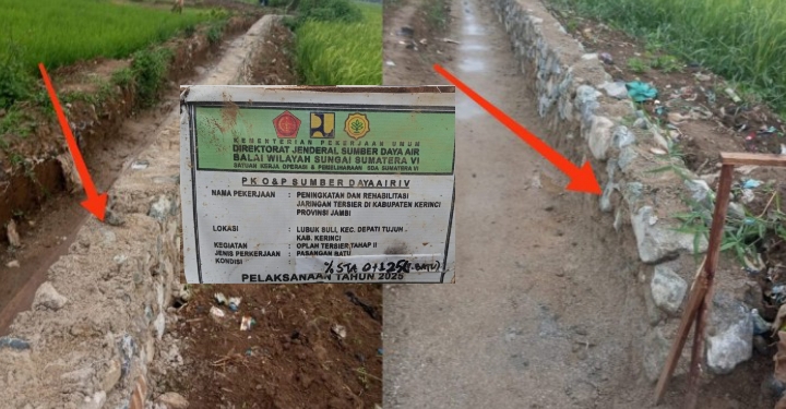 Proyek Rehabilitasi Jaringan Tersier BWSS VI di Kerinci Diduga Dikerjakan Asal Jadi